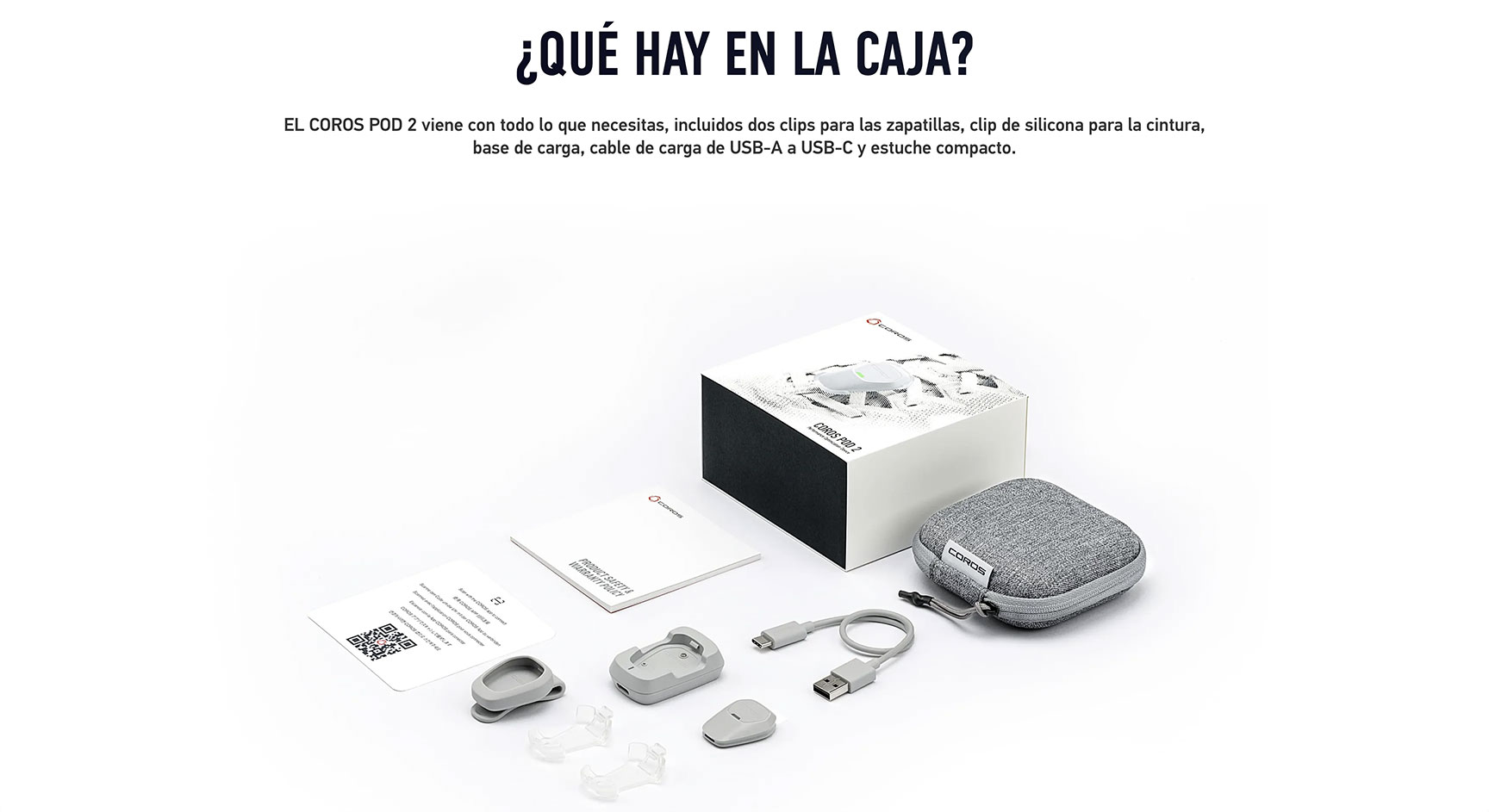 • Se incluyen dos clips para las zapatillas, clip de silicona para la cintura, base de carga, cable de carga y estuche compacto.