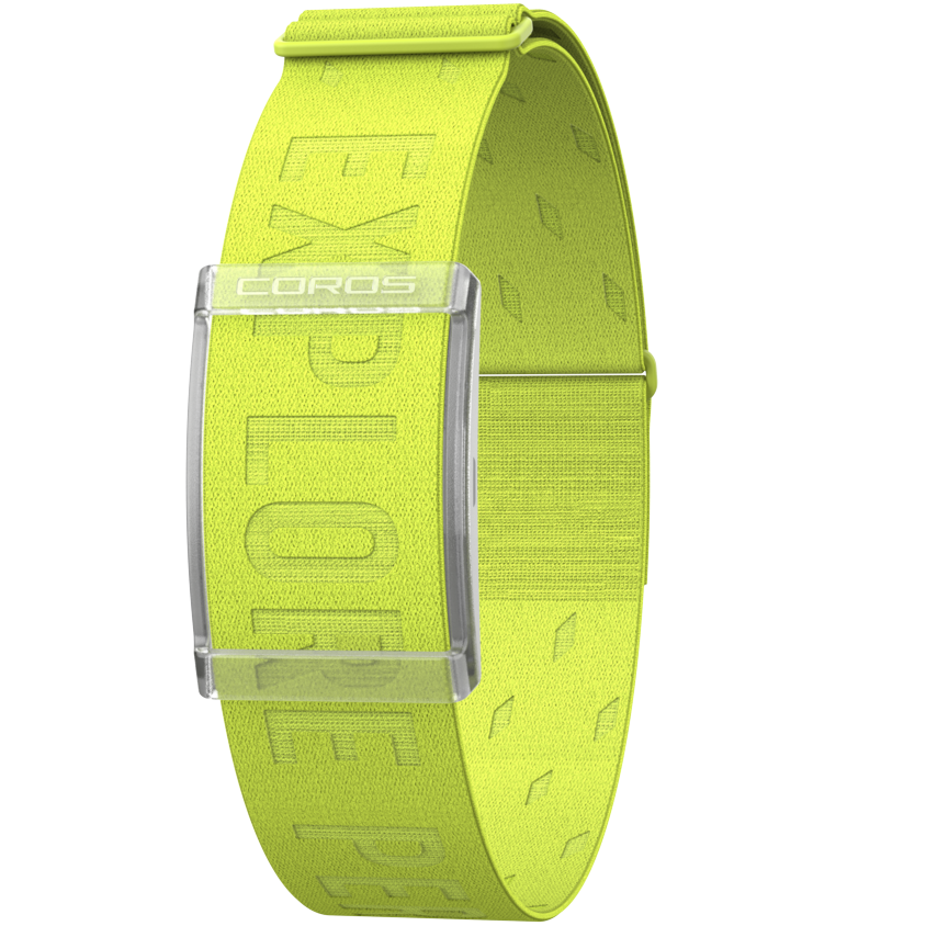 Banda de Frecuencia Cardiaca de brazo COROS color Lima. Compatible con cualquier dispositivo Bluetooth habilitado para medir la frecuencia cardíaca, el Monitor de Frecuencia Cardíaca COROS proporciona más de 38 horas de monitoreo continuo y preciso de la frecuencia cardíaca para hacer seguimiento a tus entrenamientos en total comodidad y sin distracciones.